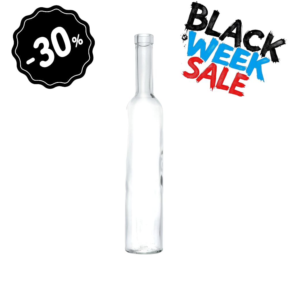 Schöne schlanke Glasflasche für Spirituosen und Liköre. Die Flasche hat ein Füllvolume von 200 ml.