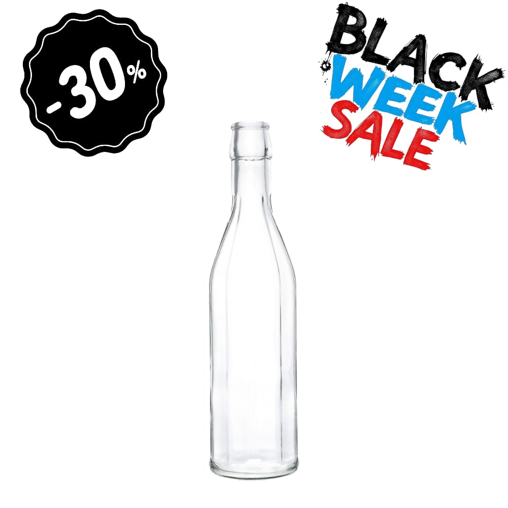 Stilvolle 750 ml fassende Bügelflasche mit Zehnkant-Grundform.